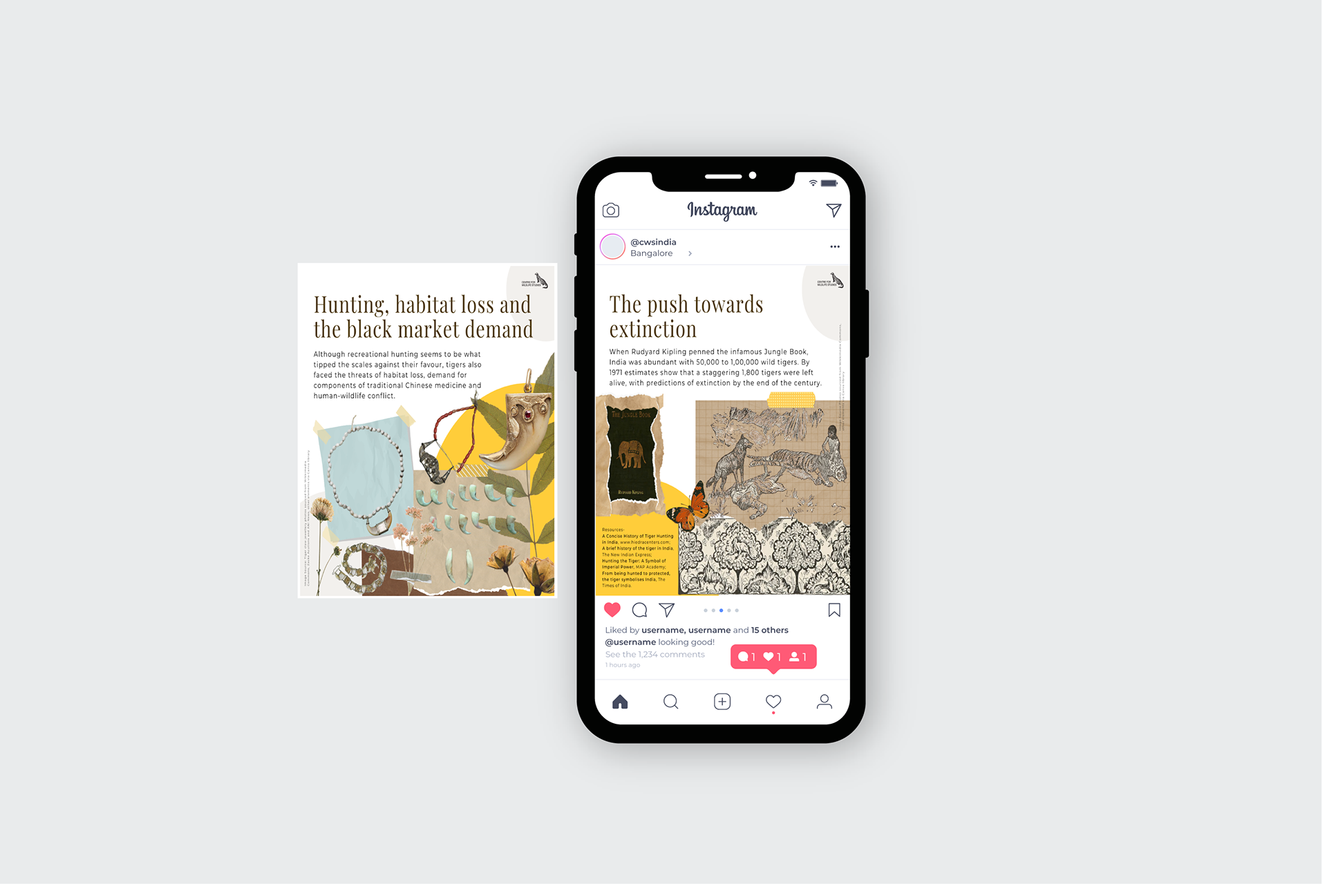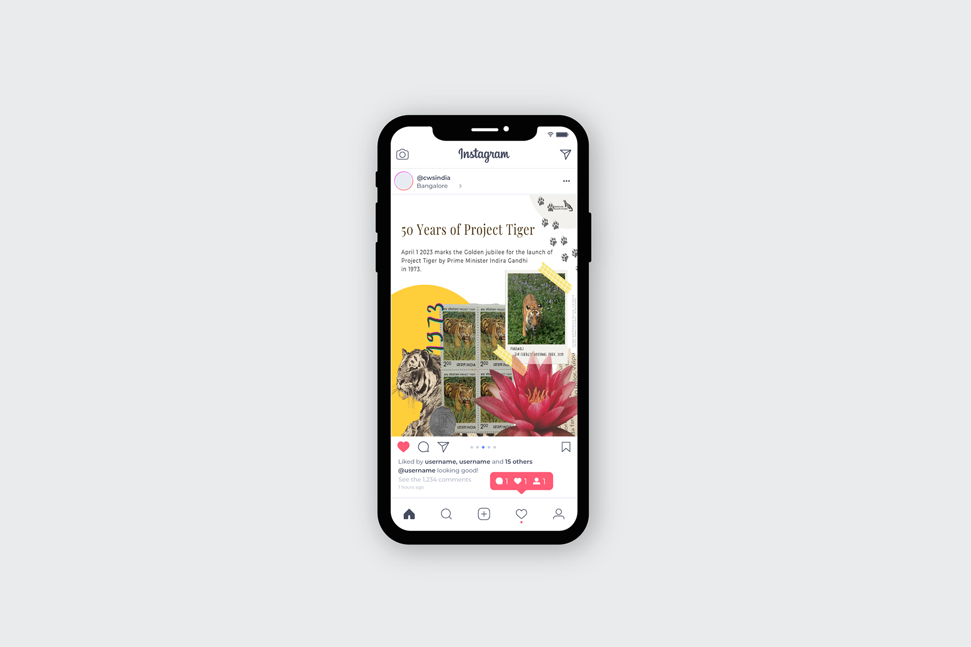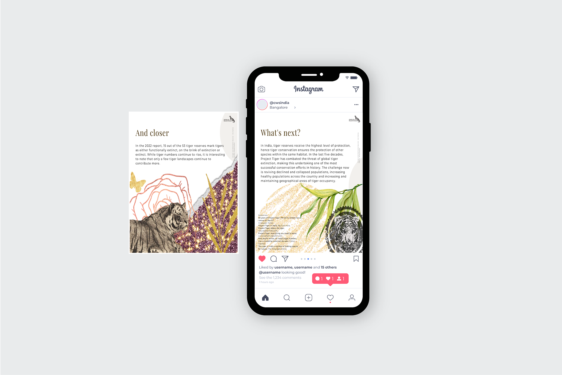 Content strategy, copy and design for the celebration of 50 years of Project Tiger in India, created for the Centre for Wildlife Studies, India's social media platforms.
