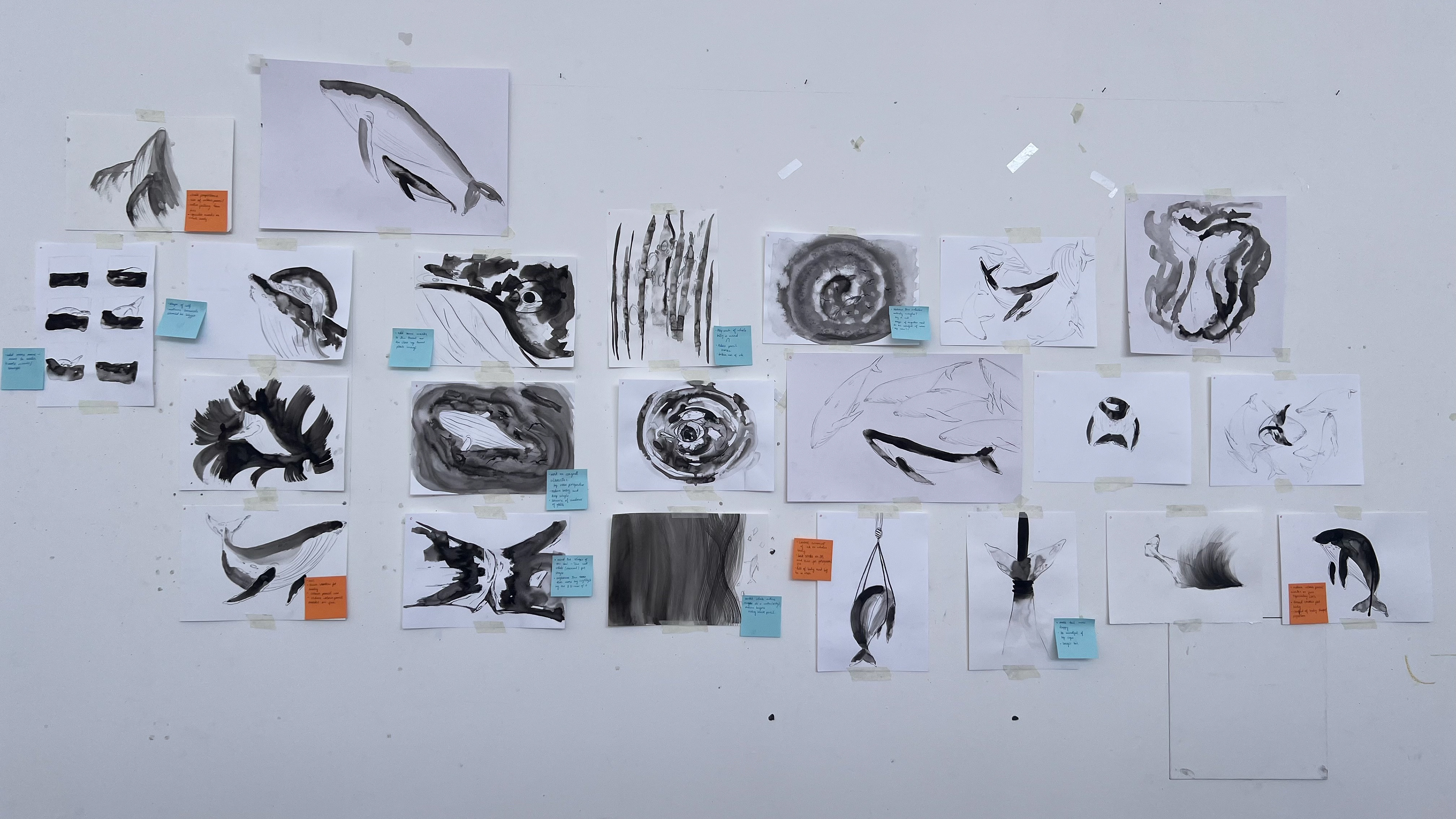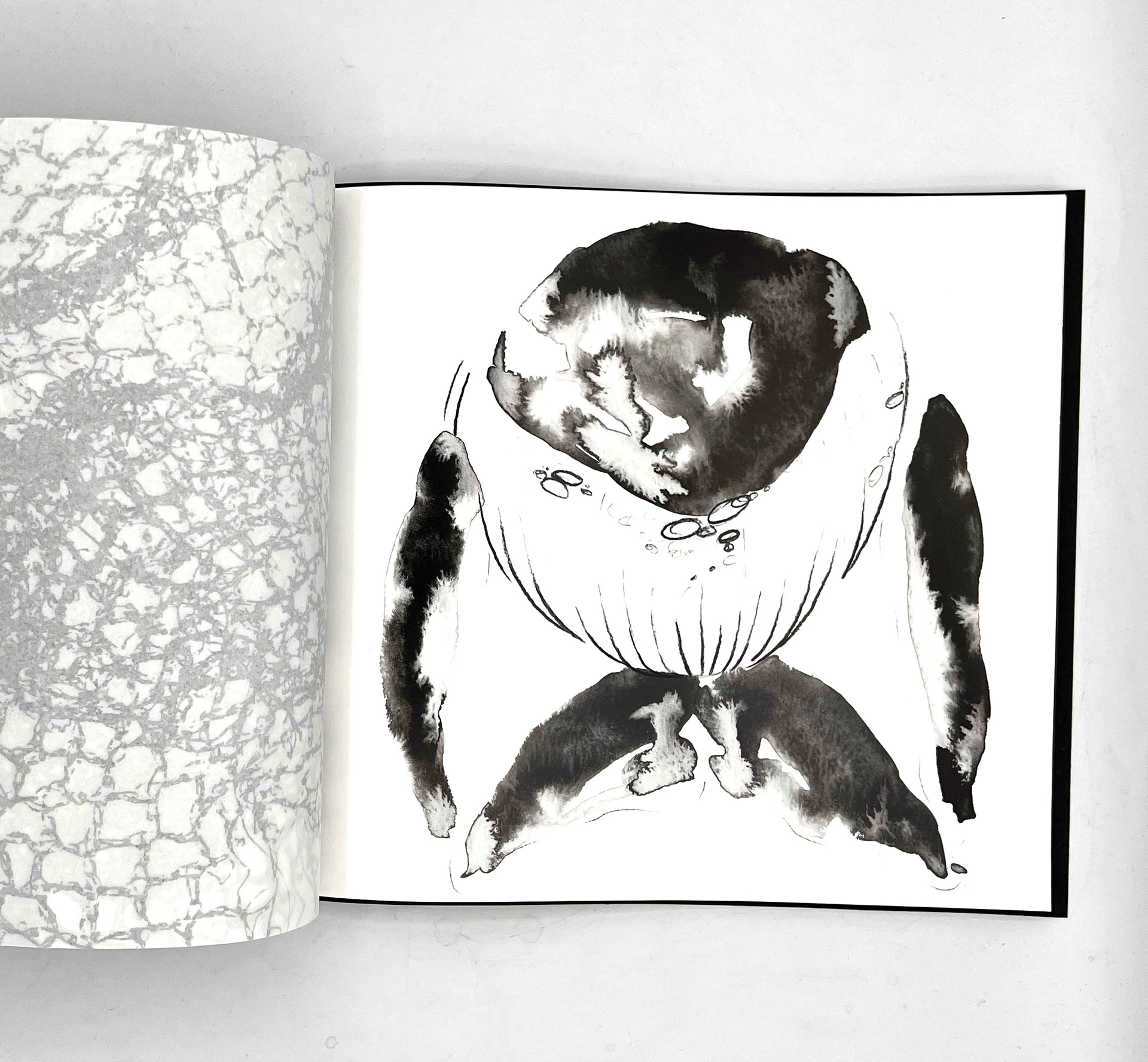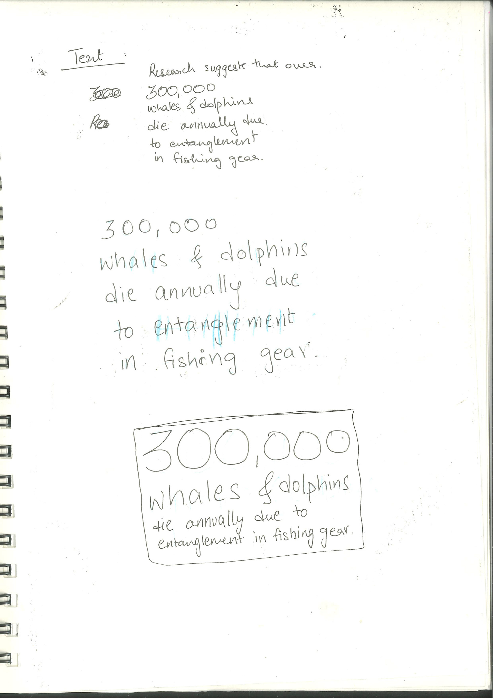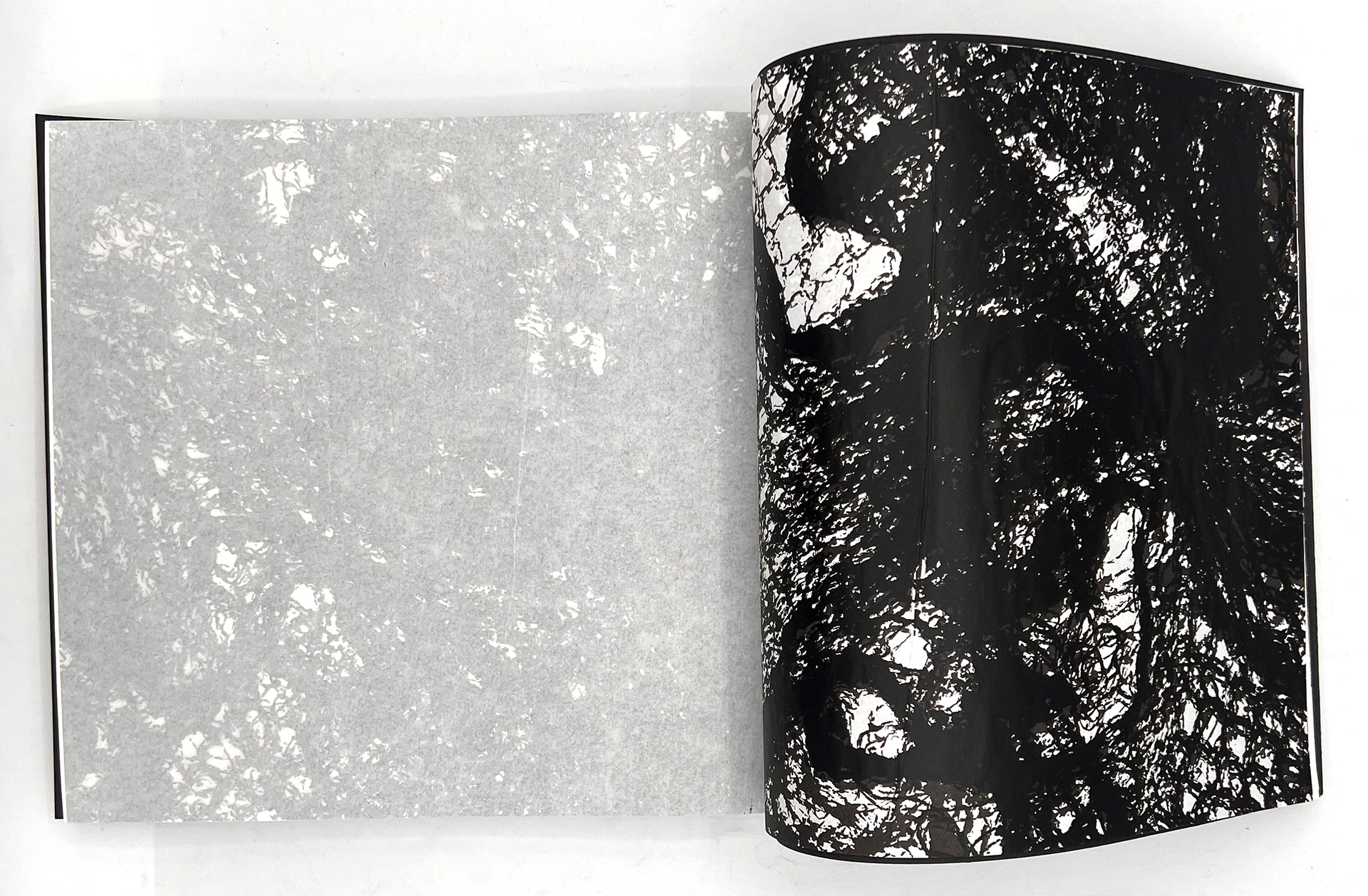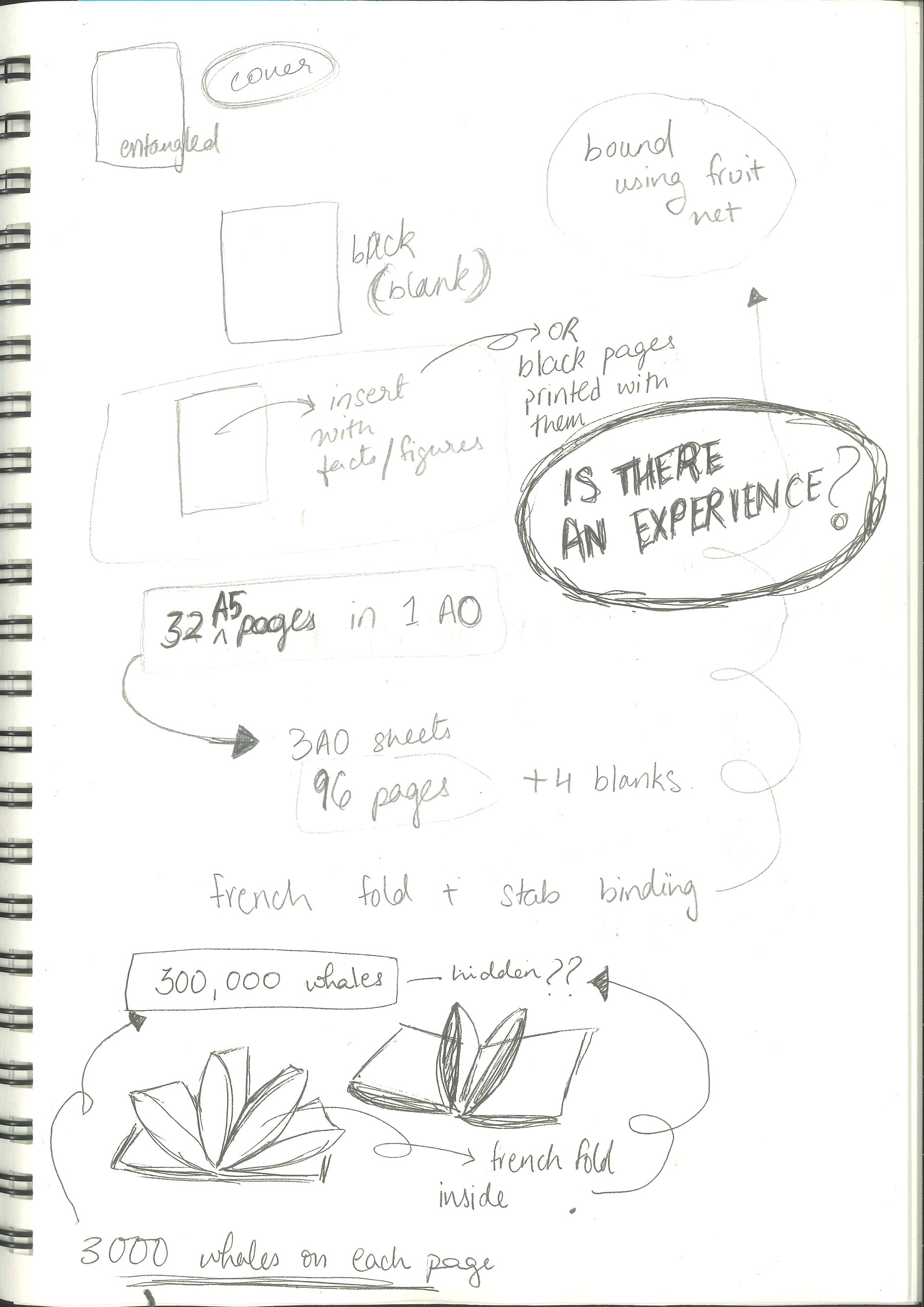 This publication embodies a stark ratio emerging from research: for every whale or dolphin lost to entanglement, four fragments of fishing gear persist. The publication, a 100-page visual reckoning, captures the tension between survival and loss within the marine ecosystems that sustain us. Its central imagery stems from monoprinted textures of a fruit net, an everyday object reimagined as the ghost nets that haunt the oceans. This texture acts as a visual anchor across the project, informing the publication and other responses.